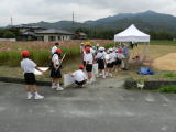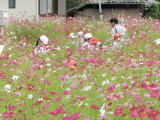 徳地船路在住の吉村芳生先生をお招きしてスケッチ大会が行われました。 参加した中央小学校の児童は、背の高さほどもあるコスモスに囲まれて思い思いの絵を描き、吉村先生に自分の絵を見てもらおうと列を作っていました。